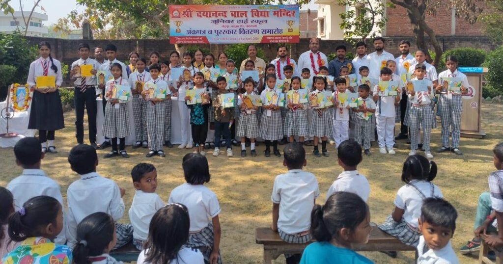 वाराणसी। श्री दयानंद बाल विद्या मंदिर जूनियर हाई स्कूल, बलुआ रोड वाराणसी में अंकपत्र वितरण समारोह का भव्य आयोजन किया गया। कार्यक्रम का शुभारंभ मुख्य अतिथि संतोष कुमार सैनी, विशिष्ट अतिथि बृजेश कुमार सैनी, विद्यालय प्रबंधक राजकुमार सैनी एवं सुमनलता द्वारा दीप प्रज्वलन के साथ हुआ।