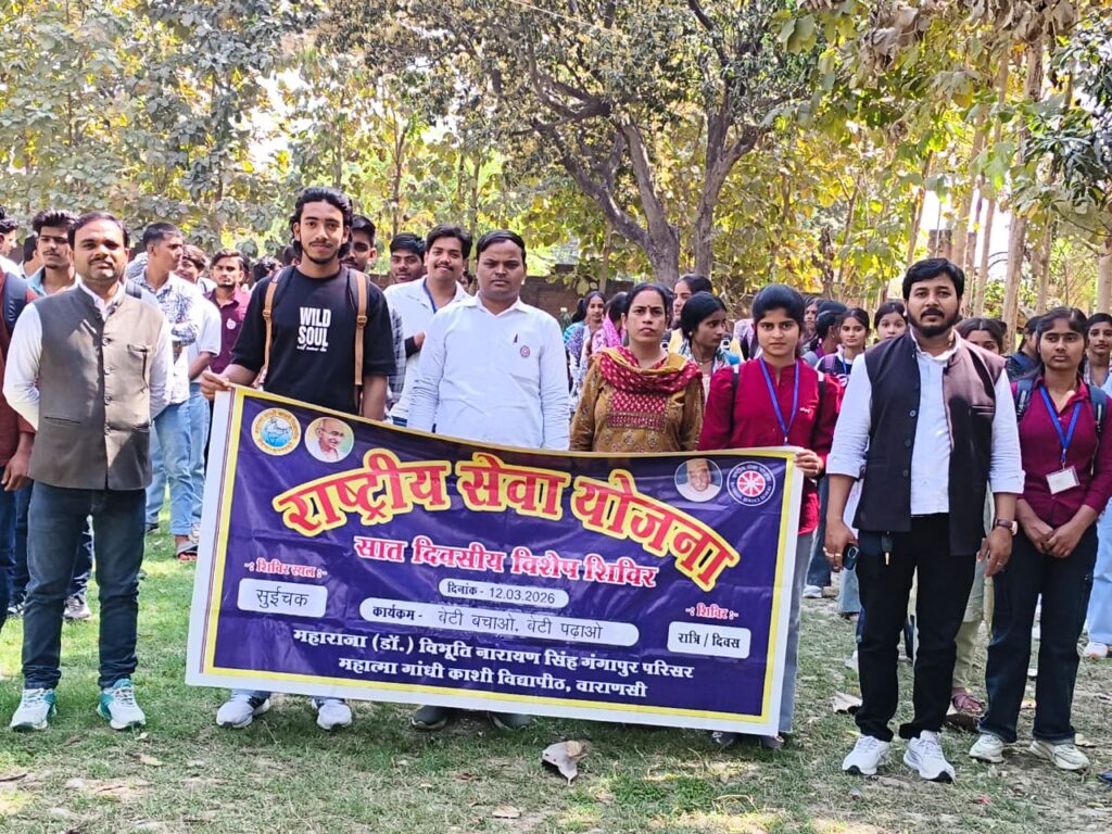 वाराणसी। महात्मा गांधी काशी विद्यापीठ के गंगापुर परिसर में आयोजित राष्ट्रीय सेवा योजना (एनएसएस) के सात दिवसीय विशेष शिविर का चतुर्थ दिवस विविध जागरूकता कार्यक्रमों के साथ उत्साहपूर्वक सम्पन्न हुआ। शिविर के अंतर्गत स्वयंसेवकों ने समाज में बालिका शिक्षा, सुरक्षा एवं सशक्तिकरण के महत्व को रेखांकित करते हुए कई प्रेरक गतिविधियों का आयोजन किया।