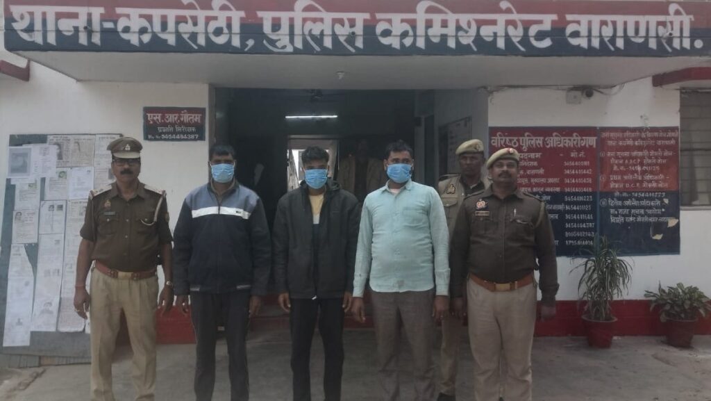 वाराणसी। पुलिस उपायुक्त कार्यालय, गोमती ज़ोन, कमिश्नरेट वाराणसी के अंतर्गत थाना कपसेठी पुलिस ने ऑपरेशन ‘चक्रव्यूह’ अभियान के तहत बड़ी कार्रवाई करते हुए तीन पशु तस्करों को गिरफ्तार किया है। पुलिस ने उनके कब्जे से एक मैजिक (पिकअप) वाहन, दो गोवंश, नशीला लिक्विड, चाकू व अन्य सामान बरामद किया है।