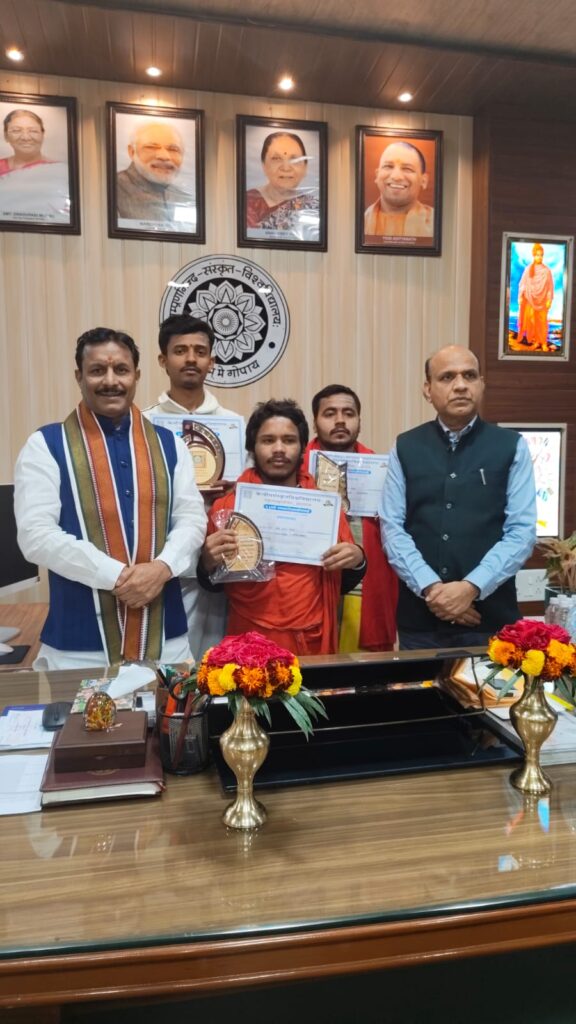 वाराणसी। सम्पूर्णानन्द संस्कृत विश्वविद्यालय, वाराणसी के विद्यार्थियों ने केन्द्रीय संस्कृत विश्वविद्यालय के गङ्गानाथ झा परिसर, प्रयागराज में आयोजित राज्यस्तरीय भाषण प्रतियोगिता में उत्कृष्ट प्रदर्शन करते हुए प्रदेश स्तर पर प्रथम एवं द्वितीय स्थान प्राप्त कर विश्वविद्यालय का मान बढ़ाया है।