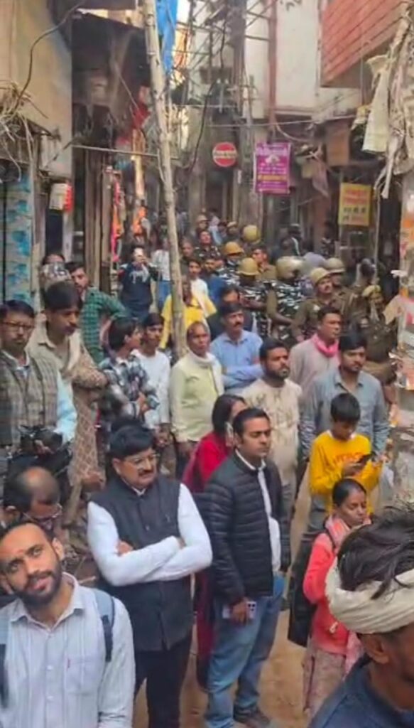 वाराणसी। शहर की प्रसिद्ध दालमंडी मार्केट में सोमवार को सड़क चौड़ीकरण अभियान के तहत प्रशासन ने बड़ी कार्रवाई शुरू की। इस दौरान सी.के. 39/38 ए, दावार आवास खान के मकान पर प्रशासन का बुलडोजर चला। कार्रवाई के दौरान किसी अप्रिय स्थिति से निपटने के लिए भारी पुलिस बल तैनात रहा।प्रशासन ने इस अभियान की तैयारी पहले से ही पुख्ता कर ली थी। यह कार्रवाई पीडब्ल्यूडी, वीडीए और नगर निगम के संयुक्त निरीक्षण में संपन्न हो रही है। मौके पर आसपास के