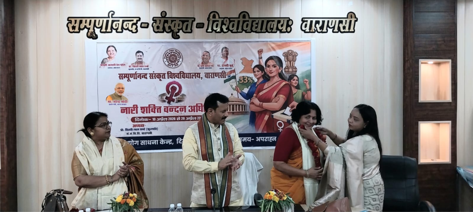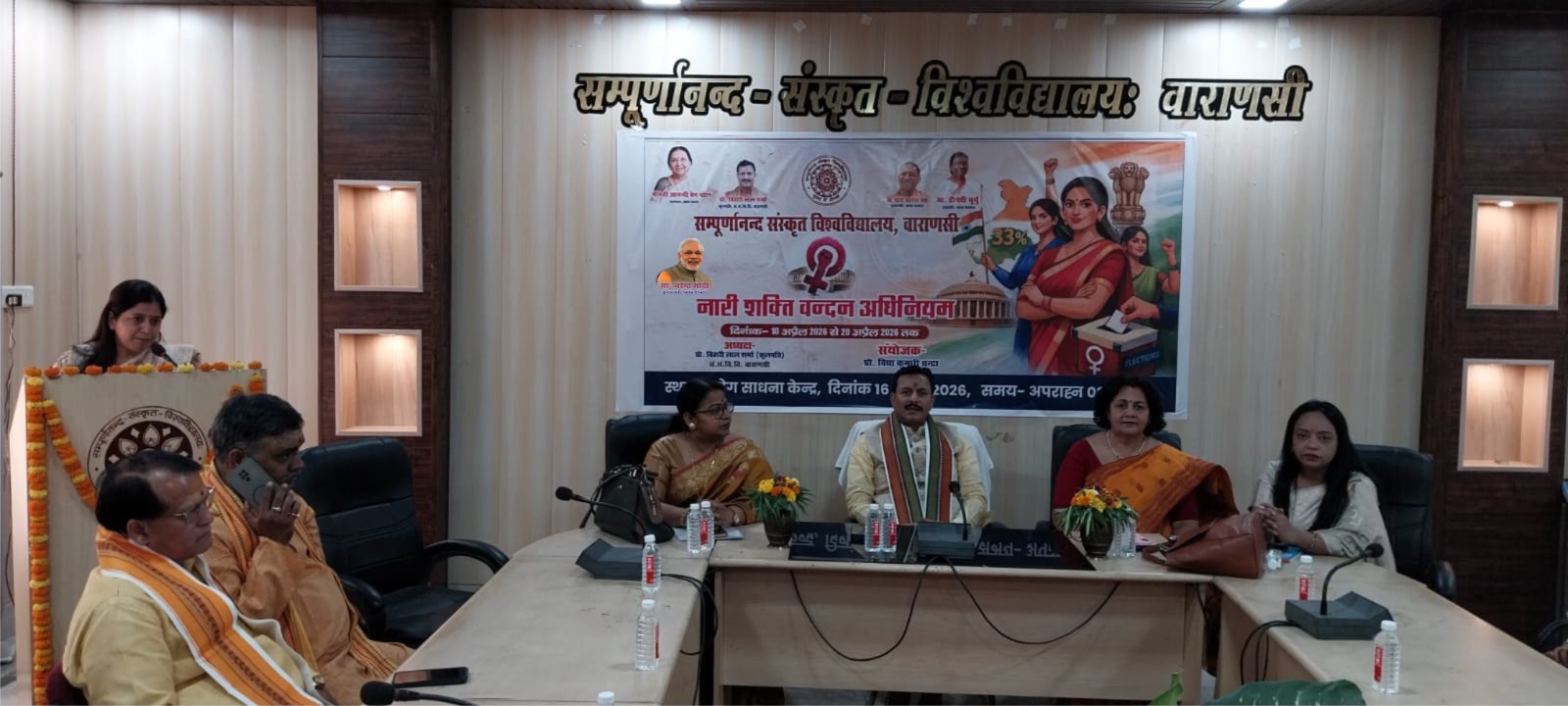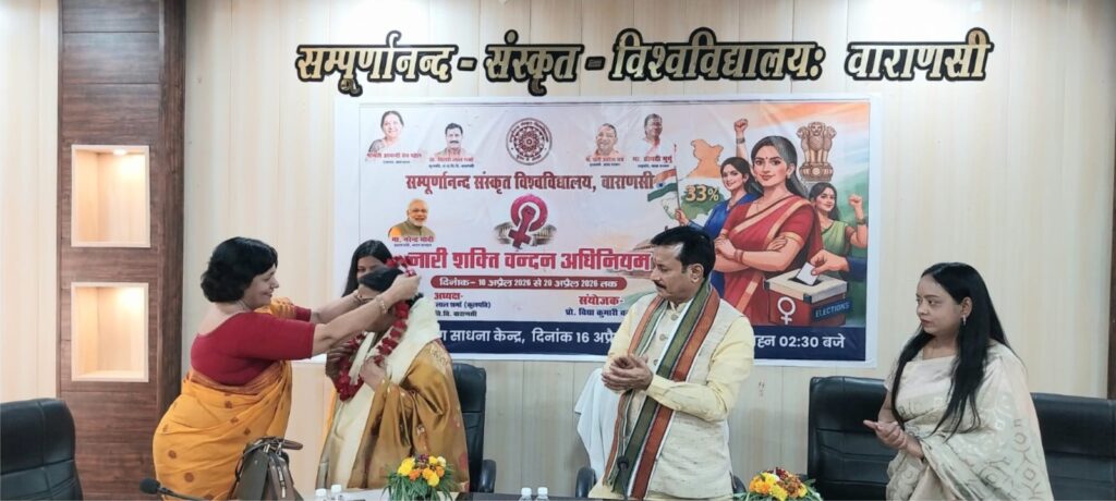 वाराणसी, 16 अप्रैल। सम्पूर्णानन्द संस्कृत विश्वविद्यालय के योग साधना केंद्र में गुरुवार को “नारी शक्ति वंदन अधिनियम-प्रचार अभियान” विषय पर एक प्रभावी संगोष्ठी का आयोजन किया गया। कार्यक्रम में नारी सशक्तिकरण के प्रति जागरूकता, सहभागिता और सामाजिक प्रतिबद्धता का सशक्त संदेश दिया गया।