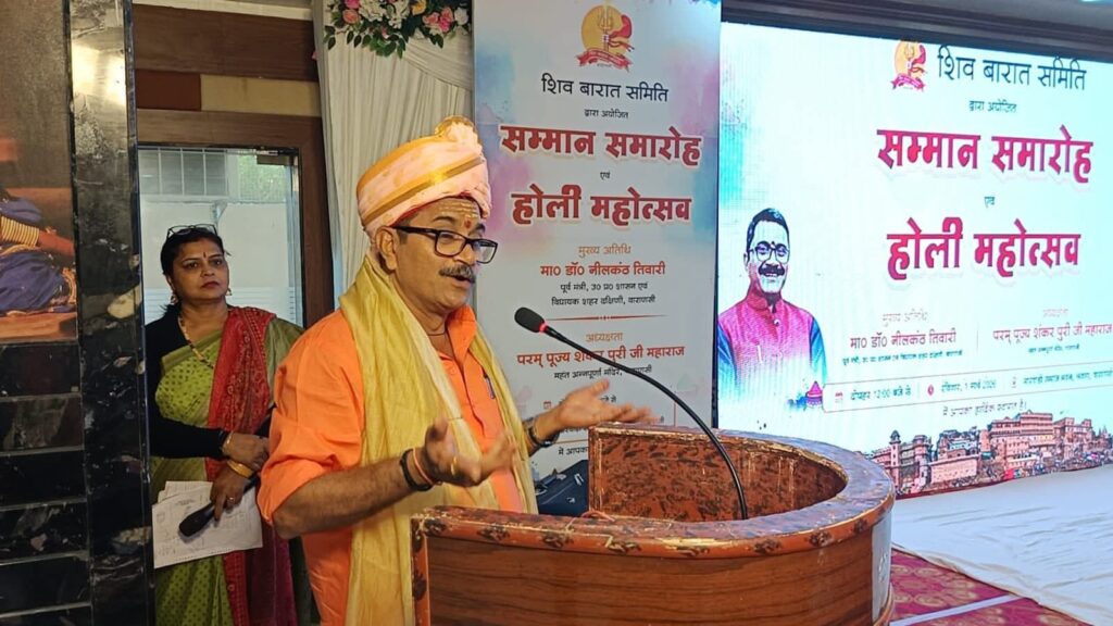 वाराणसी। शिव बारात समिति द्वारा लक्सा स्थित मारवाड़ी युवा भवन के सभागार में सम्मान समारोह एवं होली महोत्सव का भव्य आयोजन किया गया। कार्यक्रम की अध्यक्षता शंकर पुरी महाराज, महंत अन्नपूर्णा मंदिर ने की, जबकि मुख्य अतिथि के रूप में डॉ. नीलकंठ तिवारी, विधायक शहर दक्षिणी, वाराणसी उपस्थित रहे।
