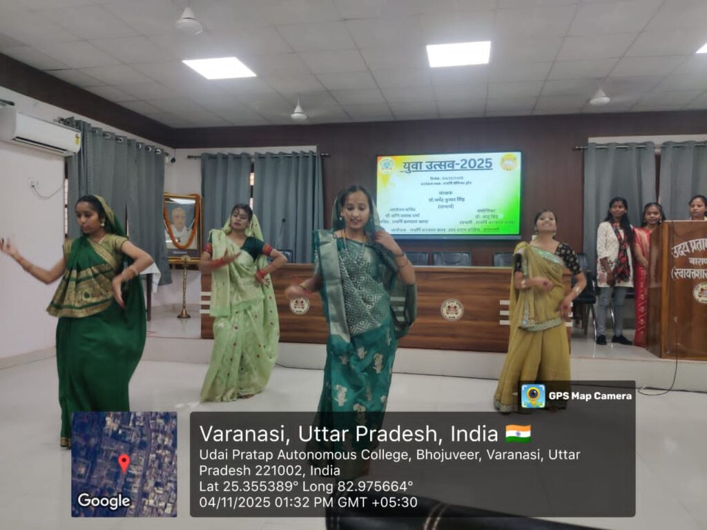 वाराणसी। उदय प्रताप कॉलेज के राजर्षि सभागार में मंगलवार को आयोजित “युवा महोत्सव” में छात्राओं ने अपनी कला, नृत्य और सृजनात्मक प्रतिभा का मनमोहक प्रदर्शन किया। पूरे कार्यक्रम में विद्यार्थियों ने कला, रचनात्मकता और उत्साह का अद्भुत समन्वय प्रस्तुत कर सभागार में उपस्थित अतिथियों का दिल जीत लिया।कार्यक्रम का शुभारंभ महाविद्यालय के प्राचार्य प्रो. धर्मेंद्र कुमार सिंह के सुभाषीष संदेश से हुआ। उन्होंने दूरभाष के माध्यम से संदेश देते हुए कहा कि ऐसे आयोजनों से विद्यार्थियों की सृजनशीलता, आत्मविश्वास और नेतृत्व क्षमता को निखारने का अवसर मिलता है। साथ ही यह राष्ट्र निर्माण की भावना को भी सशक्त करता है। मुख्य अतिथि प्रो. सुधीर कुमार राय (विभागाध्यक्ष, समाजशास्त्र) ने अपने प्रेरणादायक संबोधन में कहा कि युवाओं के पास असीम ऊर्जा और प्रतिभा होती है, बस उन्हें अपने लक्ष्य के प्रति समर्पण और अनुशासन बनाए रखना चाहिए। विशिष्ट अतिथि प्रो. गोरखनाथ पांडेय (विभागाध्यक्ष, हिन्दी) ने विद्यार्थियों को भारतीय संस्कृति, शिक्षा और समाज सेवा के आदर्शों को जीवन में अपनाने का संदेश दिया।युवा उत्सव के दौरान समूह लोकगीत, समूह नृत्य, भाषण, साइंस फेस्ट, कहानी लेखन, कविता लेखन व पेंटिंग जैसी प्रतियोगिताएं आयोजित की गईं, जिनमें छात्र-छात्राओं ने पूरे उत्साह और जोश के साथ हिस्सा लिया। कार्यक्रम का संचालन एवं समन्वय प्रो. अंजू सिंह ने किया, जबकि सह-संयोजन व धन्यवाद ज्ञापन अग्नि प्रकाश शर्मा ने किया। इस अवसर पर प्रो. शशिकांत द्विवेदी, डॉ. प्रदीप कुमार सिंह, डॉ. शशिबाला, डॉ. अंजू सिंह, श्वेता सोनकर सहित अनेक शिक्षक-शिक्षिकाओं की गरिमामयी उपस्थिति रही।