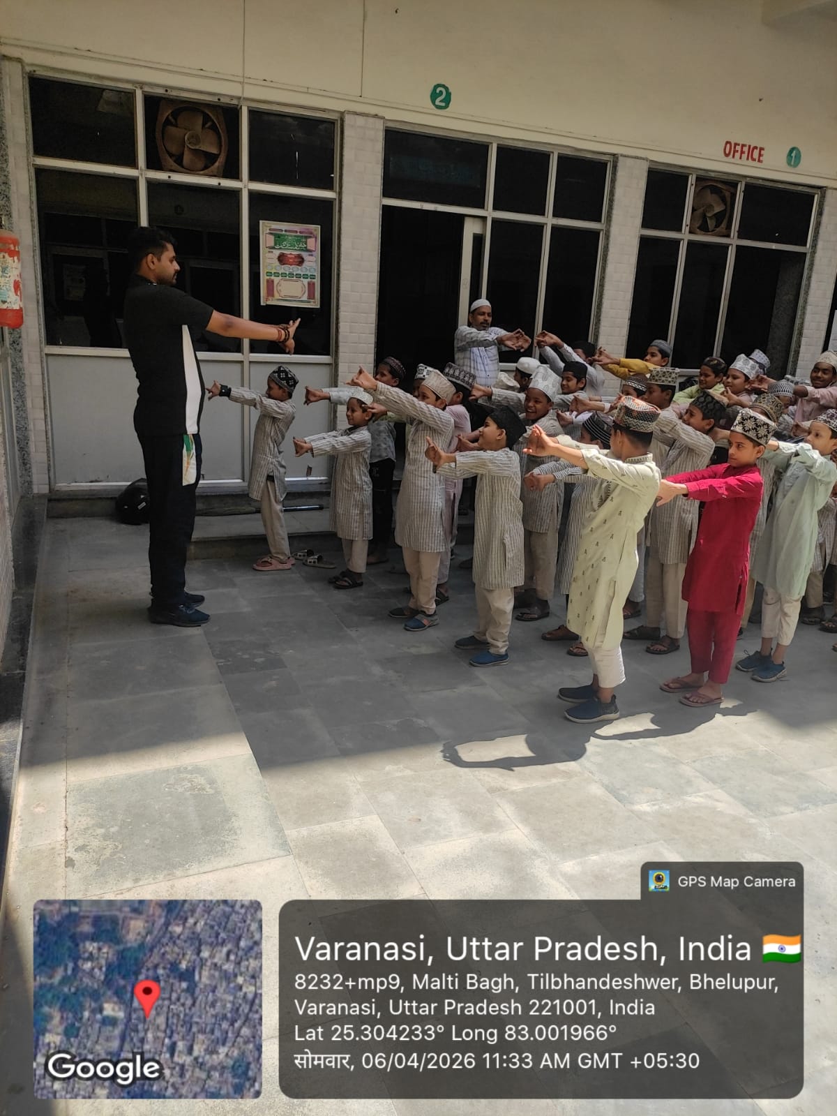 वाराणसी। रेवड़ी तालाब स्थित जामिया फ़ारूक़ीय मदरसे में सोमवार को स्वास्थ्य जागरूकता एवं शारीरिक-मानसिक संतुलन को बढ़ावा देने के उद्देश्य से विशेष योग प्रशिक्षण कार्यक्रम का आयोजन किया गया। इस अवसर पर लगभग 200 बच्चों ने उत्साहपूर्वक भाग लिया और योग के विभिन्न अभ्यास सीखे।