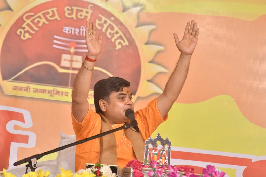 वाराणसी। क्षत्रिय धर्म संसद काशी के तत्वावधान में आयोजित शौर्य कथा कार्यक्रम में कथावाचक आचार्य शांतनु महाराज ने राष्ट्रभक्ति, सांस्कृतिक चेतना और सामाजिक एकता का प्रखर संदेश देते हुए कहा कि राष्ट्र की रक्षा और उन्नति के लिए शस्त्र और शास्त्र दोनों का संतुलन अनिवार्य है। उन्होंने कहा कि जहां शस्त्र राष्ट्र की सुरक्षा का प्रतीक है, वहीं शास्त्र समाज को सही दिशा, नीति और संस्कार प्रदान करते हैं।