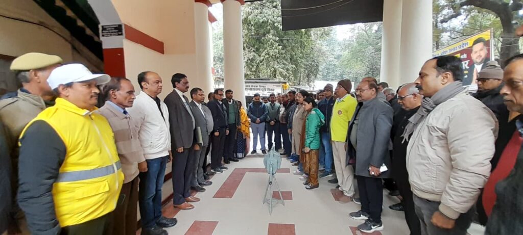 वाराणसी। शहीद दिवस के अवसर पर शुक्रवार को कलेक्ट्रेट परिसर में नागरिक सुरक्षा कलेक्ट्रेट प्रखंड की ओर से राष्ट्रपिता महात्मा गांधी सहित देश के अमर शहीदों को श्रद्धांजलि अर्पित की गई।