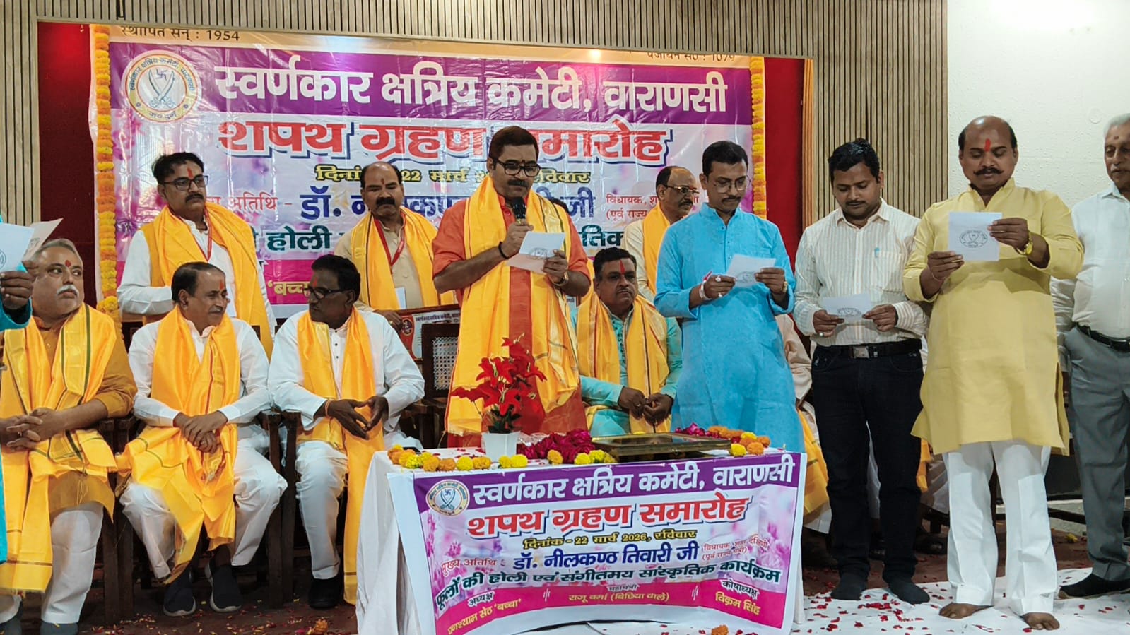 वाराणसी। स्वर्णकार क्षत्रिय कमेटी द्वारा रविवार को गोलघर स्थित काशी पत्रकार संघ के “गर्दे सभागार” में भव्य पदग्रहण समारोह का आयोजन किया गया। कार्यक्रम के मुख्य अतिथि विधायक एवं पूर्व मंत्री डॉ. नीलकंठ तिवारी रहे, जिनकी उपस्थिति में नवगठित टीम ने पद एवं गोपनीयता की शपथ ली।